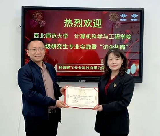 2024年10月14日,公司党委书记罗春燕、产教融合中心主任李勇、数据科学与大数据系系主任魏伟一带领研究生代表赴甘肃赛飞安全科技有限公司“访企拓岗”,并与该公司签订专业学位研究生联合培养基地协议。